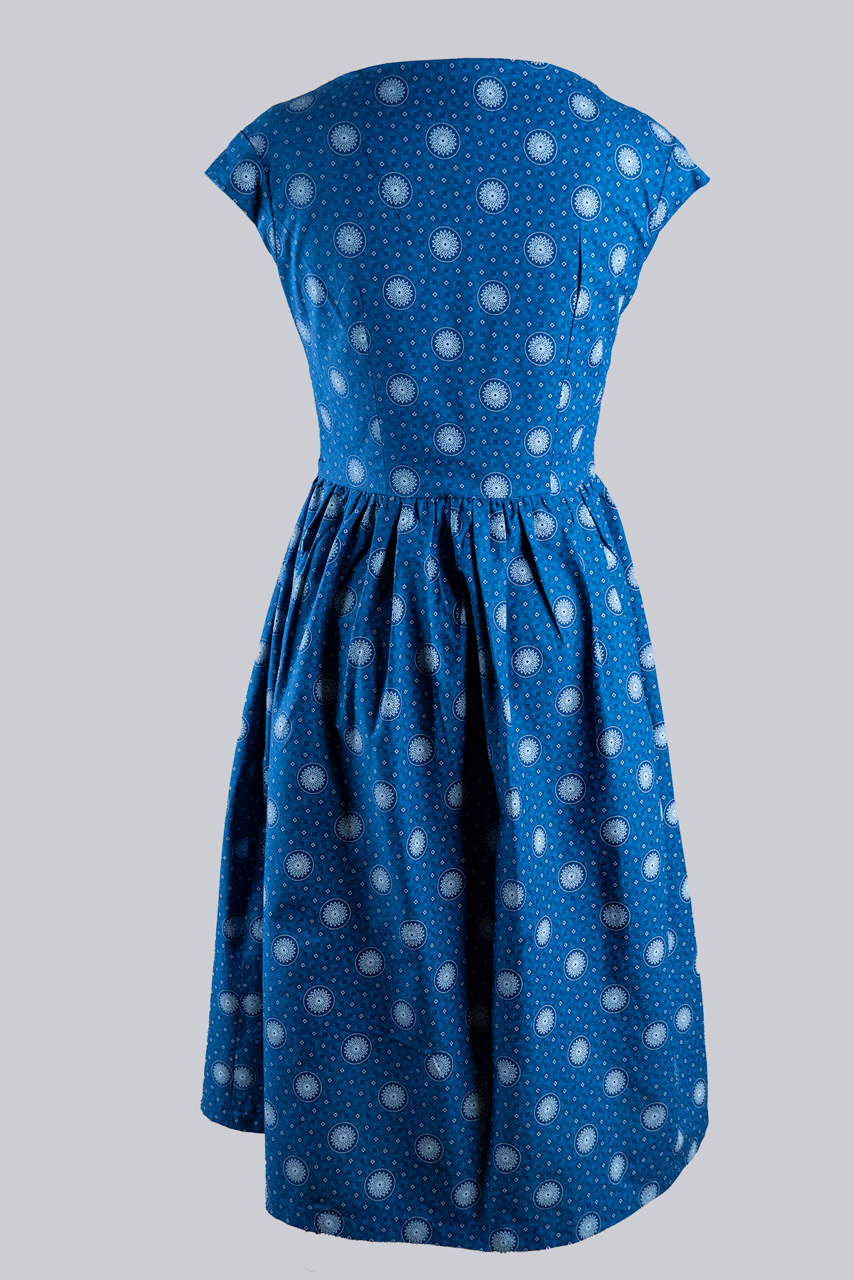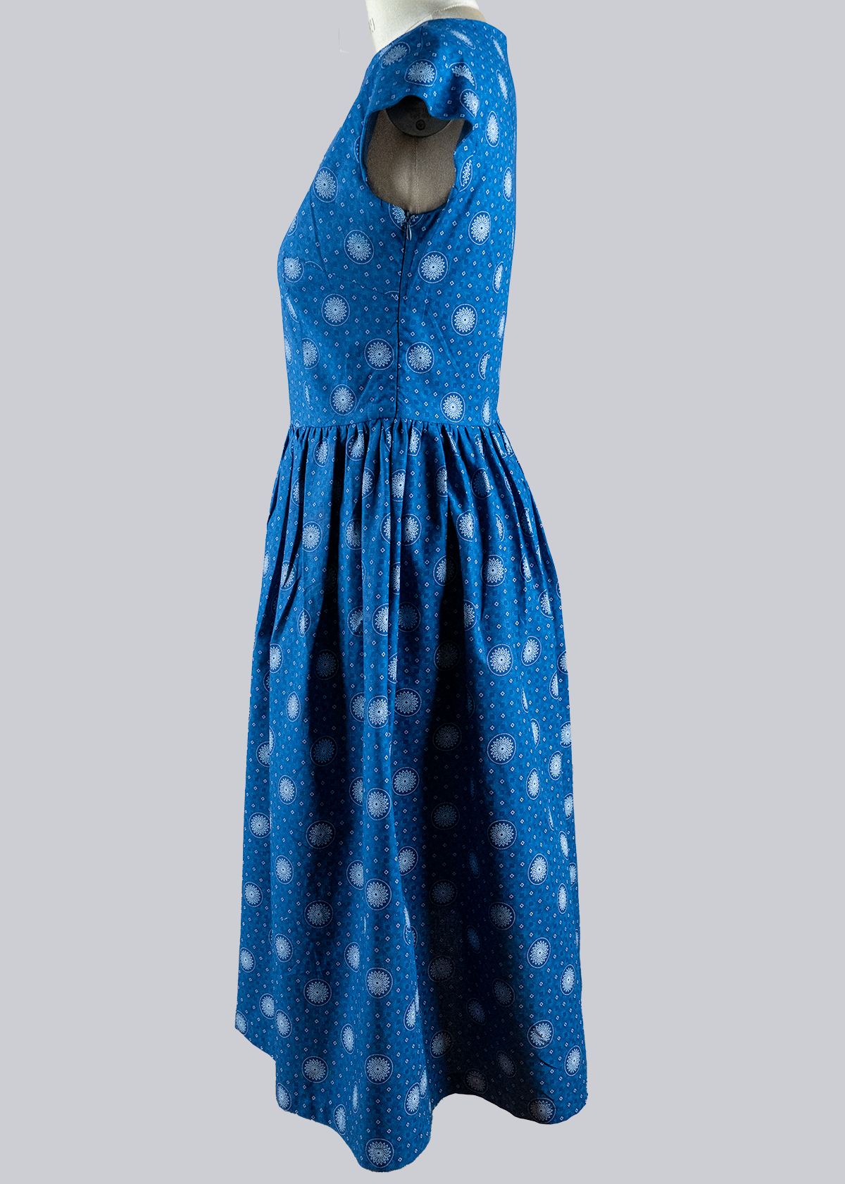 A celebration of heritage meets contemporary design, this blue shweshwe dress is made with care from 100% authentic Seshweshwe cotton fabric. Known for its vibrant patterns and premium quality, the renowned Three Cats original fabric ensures unmatched comfort and breathability for all-day wear.