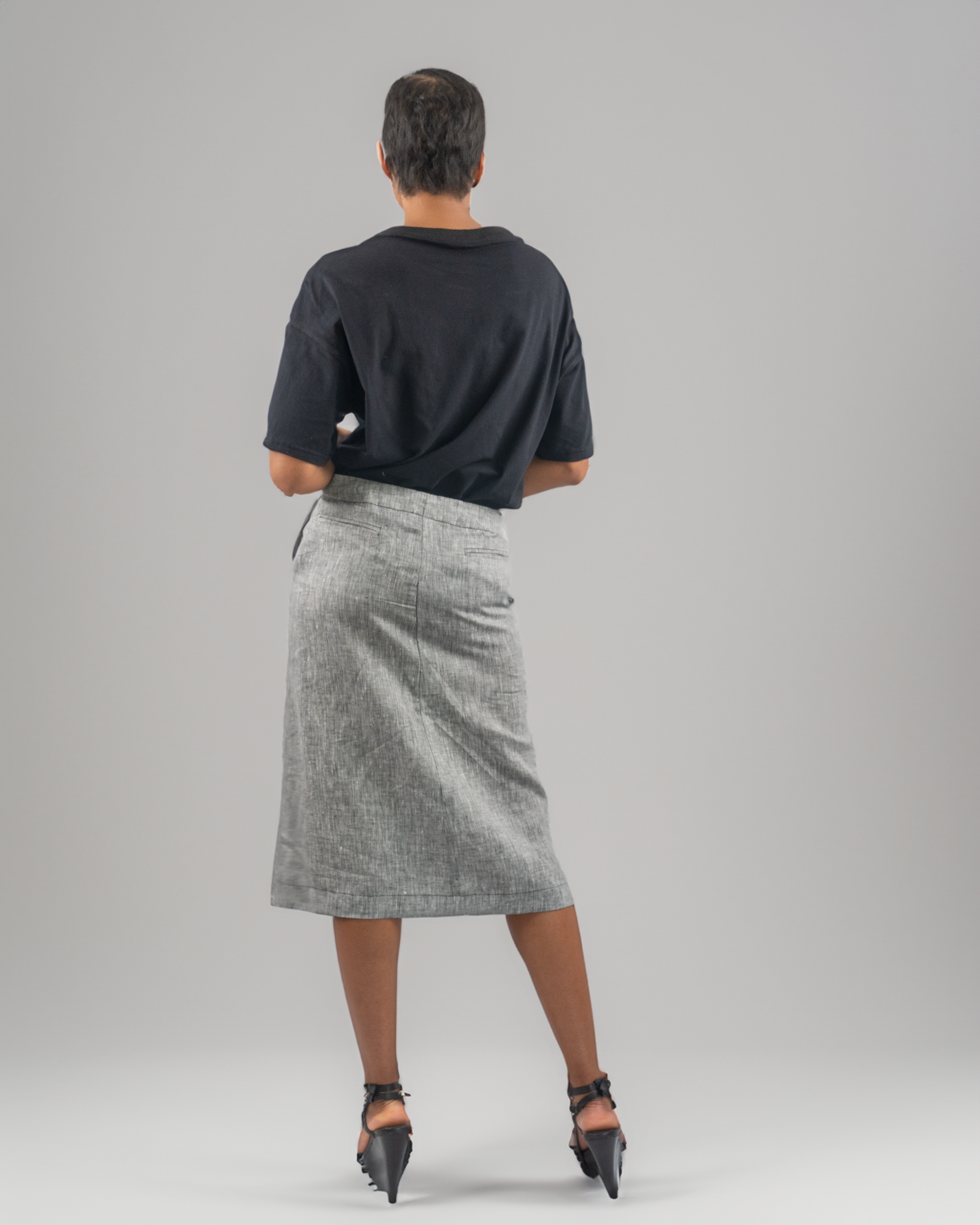 This Grey Linen Pencil Skirt is part of the Gloria & Josef minimalist collection. A capsule wardrobe design founded on the principles of Quality, Fit  and Attention to detail.