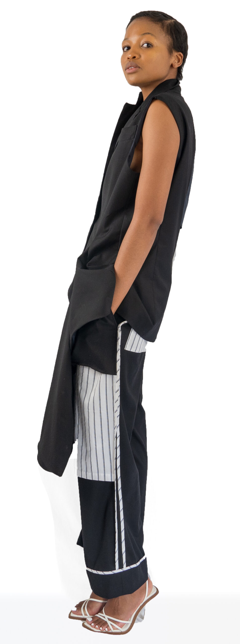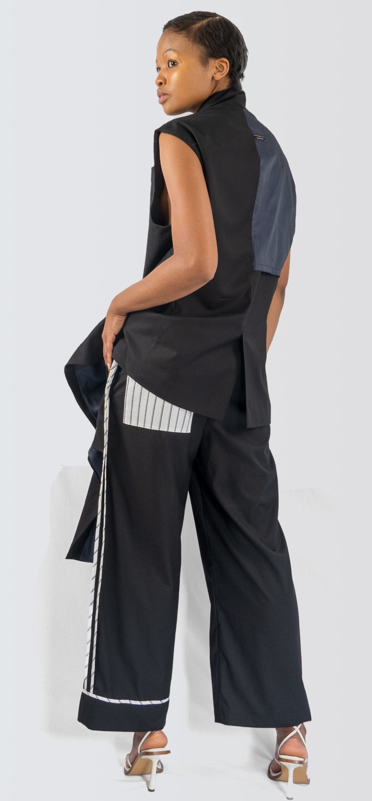 Stand out from the crowd effortlessly with the distinctive design of our wide leg pants – featuring front inserts, stripe details, interesting pockets, and chic piping accents. Embrace your fashion-forward self and seize the spotlight as a trendsetter and influencer among your peers.